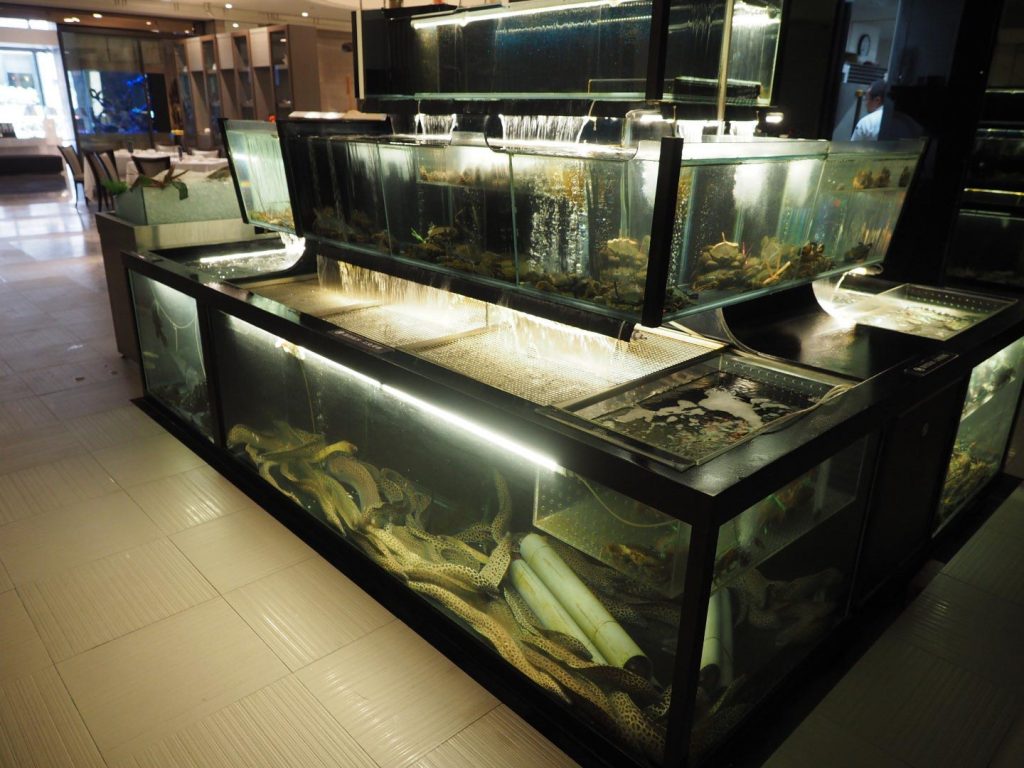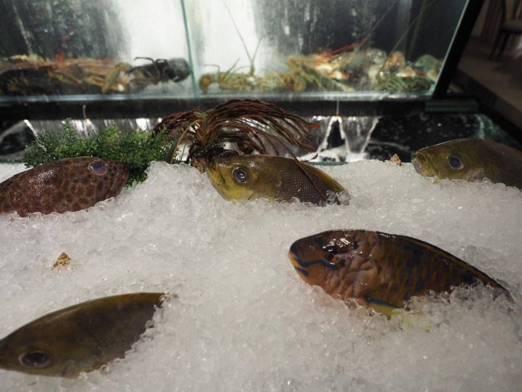 Walk into the classy interior and the first thing you’ll notice is straight out of a traditional seafood restaurant–giant tanks filled with live lobsters, crabs, moray eels, clams, fish and other seafood, plus various ice-filled boxes and displays stuffed with a wide range of ingredients and labeled side dishes. This includes freshly-caught fish from Ali’s very own fishing boat, delivered daily from Kenting’s Houbihu harbor.