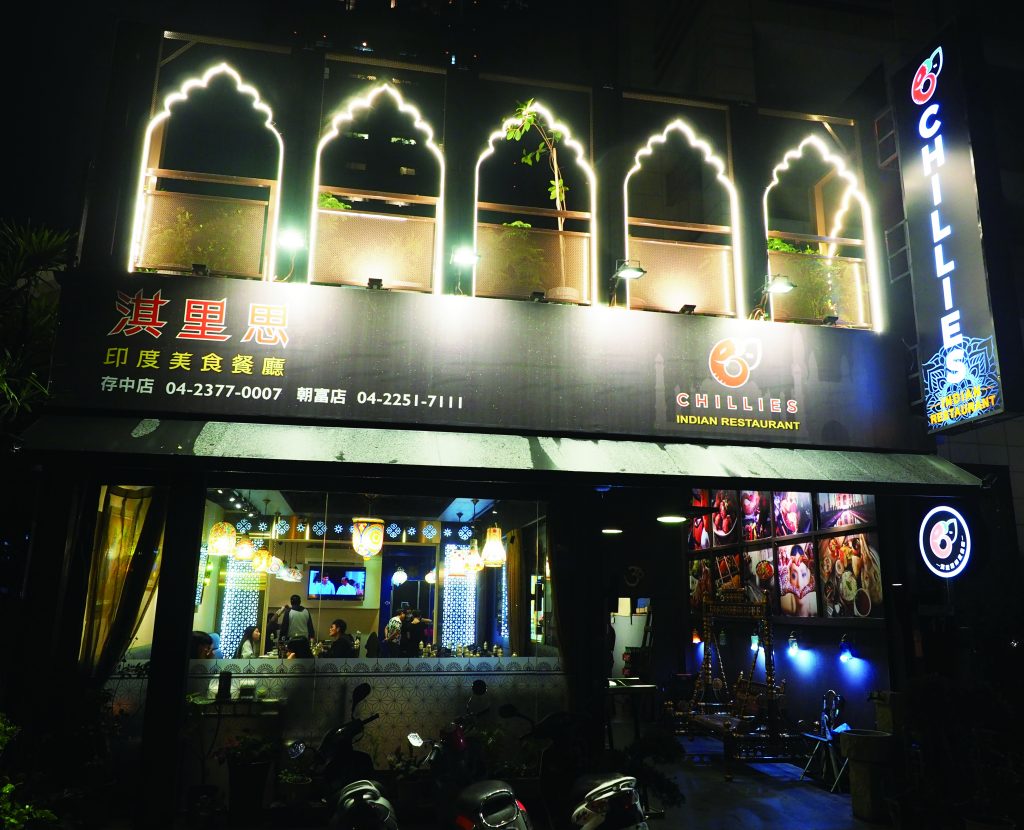 “I think that a restaurant’s environment can heighten the customers’ dining pleasure and food flavors,” says Chillies’ Indian owner Minesh Valand, who has recently done just that at all three of his restaurants (2 in Taichung, 1 in Hsinchu), making them arguably the most attractive Indian eateries anywhere in Taiwan.