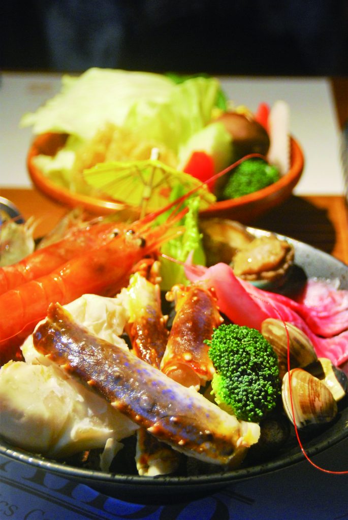 An armed knight statue and vaulted entrance welcome customers to sample seafood, charcoal-heated hotpot here. Charcoal is used everywhere, from filtering kettle water to the Bonito Seaweed Hotpot where, the owner notes, it helps absorb the saltiness. This hotpot consolidates the seafood, meat and vegetable flavors and the added taste of charcoal adds an extra hint of freshness to the broth. A two-person Seafood and Meat Hotpot (NT$999) comes with plenty of ingredients, including crab, shrimp, squid, Argentine red shrimp, abalone, scallops, white shrimp, beef sirloin, pork belly, chicken filet, and vegetables. King Crab Seafood Hotpot (NT$580) and Argentine Red Shrimp Hotpot (NT$390) are also recommended. Extra meat, seafood and other side dishes (NT$30-180) are among a la carte orders, which include rarely-seen Charcoal Milkfish Balls, Charcoal Squid Balls, Spicy Balls, and Ginger Balls (NT$50 each). Non-hotpot dishes include pasta, Korean Barbecued Meat over Rice (NT$200-250), deep-fried snacks (NT$50-180), and specialty coffees (NT$35-300). –By Niang Chen Translated by Anna Yang