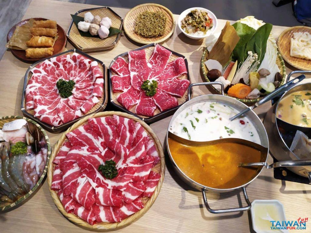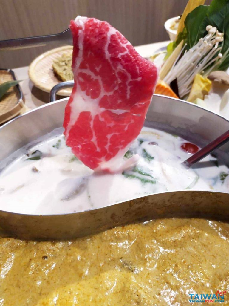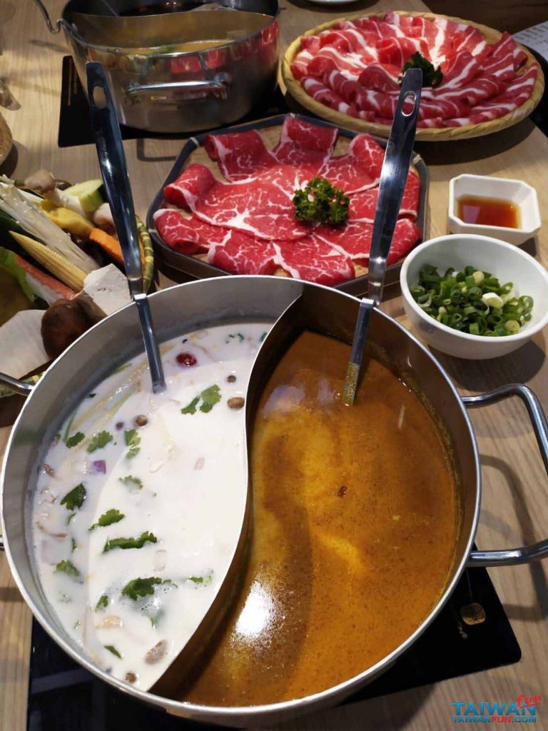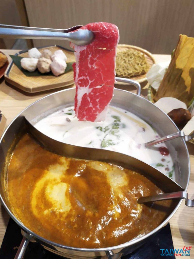 A variety of handmade, rarely-seen Southeast Asian style hotpots featuring Laksa, Coconut, Bakuteh, and Tom Yam Kung flavors are offered with many fresh ingredients at this restaurant. Besides soup bases (NT$79-99) and chicken, pork, US beef and wagyu beef meat platters (NT$178-1,188), other dishes include Thai Basil Chili Pork over Rice; Crisp Fried Bread Sticks; Spicy Pork Meatballs; and Vegetables (all from NT$10 to 119). Two-person (NT$999) and three-person (NT$1,799) set meals feature a soup base (including vegetarian option), meat platter (can be substituted with vegetables), vegetable, noodles and rice, plus unlimited drinks and Thai-style fruit ice cream. Recommended combinations include Bakuteh Hotpot with Crisp Fried Bread Sticks; Coconut Hotpot with vegetables; sour-and-spicy Tom Yam Kung Hotpot with seafood; and Laksa Hotpot with dried tofu. Soup flavors can also be adjusted in various ways, such as adding lemon juice to the Tom Yam Kung Hotpot, or removing the spice pouch from Bakuteh Hotpot for a lighter taste. As the restaurant is usually packed, reservations are recommended.