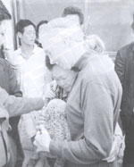 Jane brought along her mascot, a stuffed monkey called “Mr. H.” Mr. H. was given to her by Gary Horn, one of her most “inspirational friends.” Gary went blind when he was 25. But instead of allowing his blindness to interfere with his life, he learned magic. He now performs children’s shows and has developed his skills to such a degree that the children have no idea he is blind until he tells them. Jane says that Mr. H carries some of Gary’s human spirit and that those who touch it can take some with them. Mr. H has so far been touched by more than 500,000 people all over the world, including some of Taiwan’s earthquake victims.