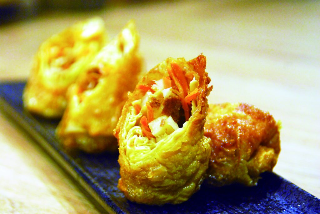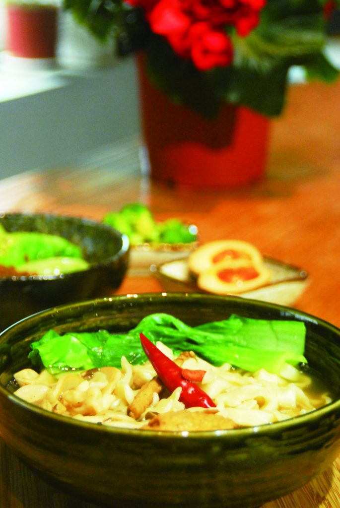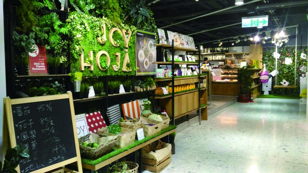 All this doesn’t necessarily come easy as enjoyable, all-natural vegetarian delicacies take more effort to prepare. A plate of Dried Noodles (NT$138) is prepared with various vegetables and mushrooms, and feature noodles broiled in a soup base made with herbs and spices that includes pepper flavoring highlights. Golden Crisp and Cheese Vegetables Over Rice (NT$260) is a mix of deep-fried vegetables and cheese with Korean kimchi (fermented spicy cabbage), sesame-flavored vegetable ferns and scrambled eggs.