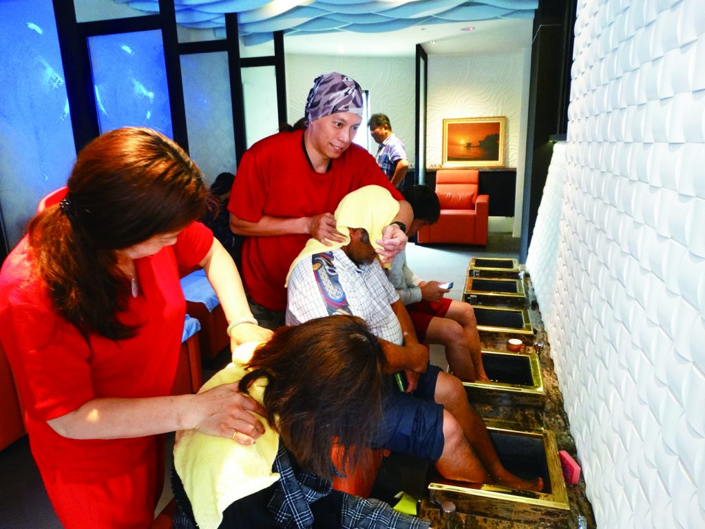 Those who are looking to relax, perhaps relieve some work-related stress, and happen to be in the Fengjia Night Market area can stop by this new business for a foot massage. This shop, affiliated with Chiu Hong Gu Company, features an interior that is divided into private rooms, decorated with elegant blue lights that match the cozy chairs. The center is staffed by over 10 experienced masseuses and masseurs providing foot (NT$580/1 hour) and body massages. Besides the standard massages, this shop also offers shiatsu/oil massage (NT$780/hour), scraping therapy, and pedicure treatments for reasonable prices. –By Ann Li Translated by Anna Yang