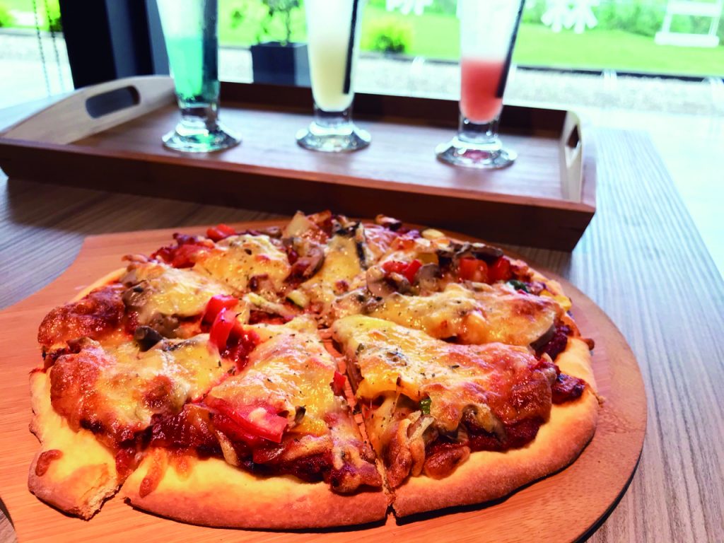 Situated along the Dadu Blue Highway, this cafe is near hiking trails and the Wangaoliao Night View Park on top of Dadu Mountain and one of the best times to visit is around sunset, when great ocean views can be enjoyed. The cafe is also a nice spot to savor a cup of coffee or meal after hiking and biking in the area, and an excellent relaxing destination for couples and families. Its two-story building is covered with greenery and the interior has a simple industrial loft design. If you look out through the glass walls, you can take in the surrounding trees and natural surroundings, as well as the attractive evening views of the blue lights along the Dadu Blue Highway. Customers can choose from a variety of snacks such as handmade pizzas, burgers, onion rings, deep-fried food platters and grilled chicken wings, and drinks include a tartly-sweet sparkling wine with low alcoholic content (NT$120), Flower Tea, and Tea with Milk (NT$120-130/cold or hot).