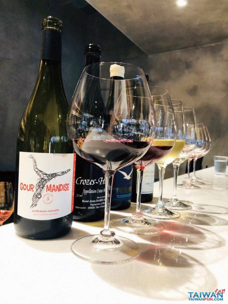 Wine Not is the first Taichung wine-tasting shop to focus on natural wines. Professional sommelier/owner Max offers nearly a hundred such wines from Europe, North America, Australia, Japan and Taiwan. Jokingly describing his business as a “soul-searching pharmacy”, he believes that his selection offers excellent flavors, with the origins and winemaking processes of these wines expressing a unique culture and philosophy. The shop’s wine menu is very simple; every bottle on the wall shelves has a price tag (NT$1,400-2,000) and customers are welcome to make a choice when they enter. Daily special wines by glass (NT$250-400) are also available. No food is offered here but you can bring your own outside items to eat for an added clean-up fee. There is a minimum NT$1,000 per person order during holidays. Besides in-house wine enjoyment, the owner also offers customized select-wine gatherings and other events (call for details).