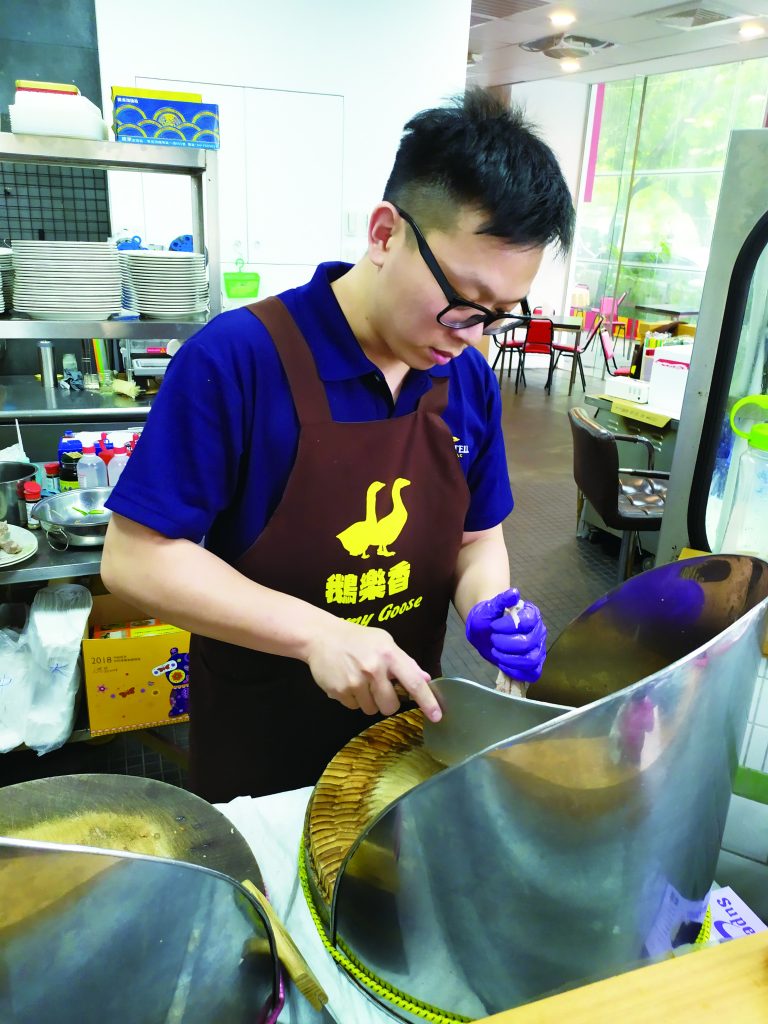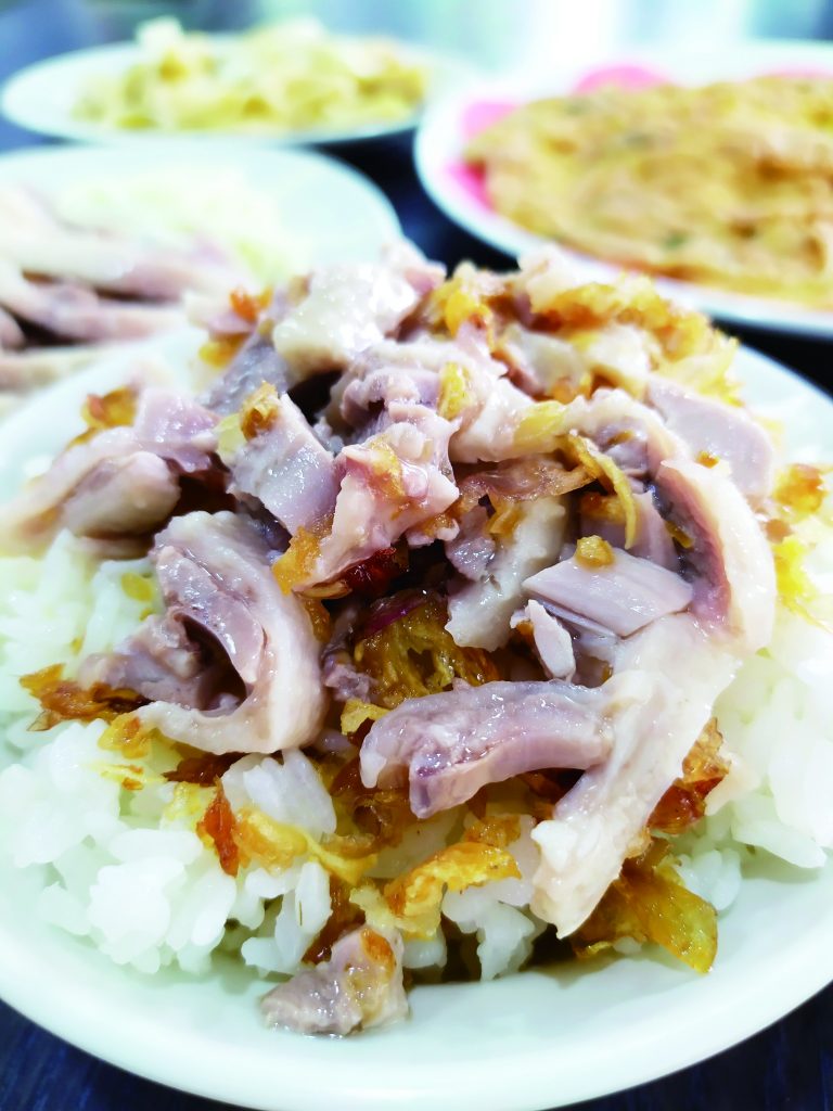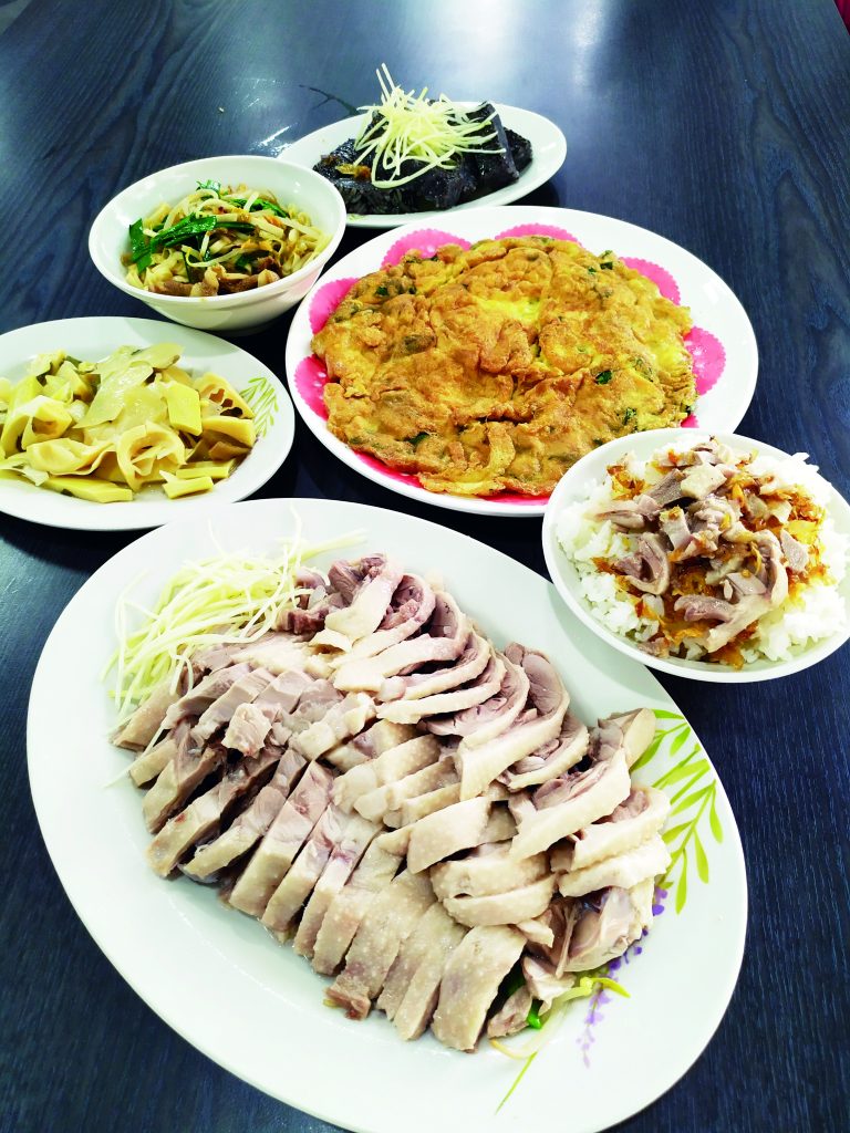 This shop’s youthful owner used to work in the tech industry but, after meeting a goose breeder from his home county in Yunlin, decided to open a restaurant serving delicious fresh, water-boiled goose. All his geese are sourced from Yunlin and sent over when they’re 3-4 months old (about 3.5 kilograms). Based on the advice of an experienced older chef, he uses medium-to-high heat to boil and simmer the birds and a sharp knife to evenly slice the goose meat (NT$200-1,500/based on plate size), which is topped with shredded ginger before serving. The final result is succulent and tender. The delicious, but inexpensive, Goose Fat Noodles (NT$40) is served with deep-fried scallions. Other traditional, nostalgically-flavored a la carte goose dishes include Stir-Fried Goose Intestines with Celery, Pan-Fried Goose Egg with Basil (NT$100-120); Sauteed Goose Wings; Goose Fat with Sponge Gourd and Clams; and Goose Fat with Squid (NT$180-380). Every one of these pairs excellently with rice and wine. –By Niang Chen Translated by Anna Yang