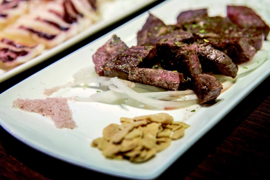 位於朝富路朝馬轉運站旁的平價鐵板燒,提供了多種海鮮、牛、羊、豬、雞、魚等鐵板現做料理,基本炒肉片130元,有免費飲料、咖啡、每日例湯、炒高麗菜或豆芽,吃完都可免費再續加。白米採用西螺的一等米,米質香軟口感佳,也有各種不同套餐分ABC三種,搭配一樣肉品和海鮮選擇;如海陸全餐600元,有法蘭克choice牛腹脅,油花分布均勻,肉質細緻,師傅手藝拿捏恰到好處,煎至外酥內軟,配上脆脆的香蒜,吃出原味,香煎天使紅蝦加鱈魚,飽足感很夠,炒青菜新鮮可口,還有紅燒或日式豆腐,以雞蛋豆腐香煎淋上特調蜜汁和美乃滋,鹹甜滑嫩。不定時推出幸福料理,以當季食材添入新元素菜色,讓餐點更多變化選擇。用餐完畢可移坐至一旁的休閒榻榻米區,喝飲料、放鬆聊天,或旁邊同體系的木樨咖啡也可單點飲品直接享用。