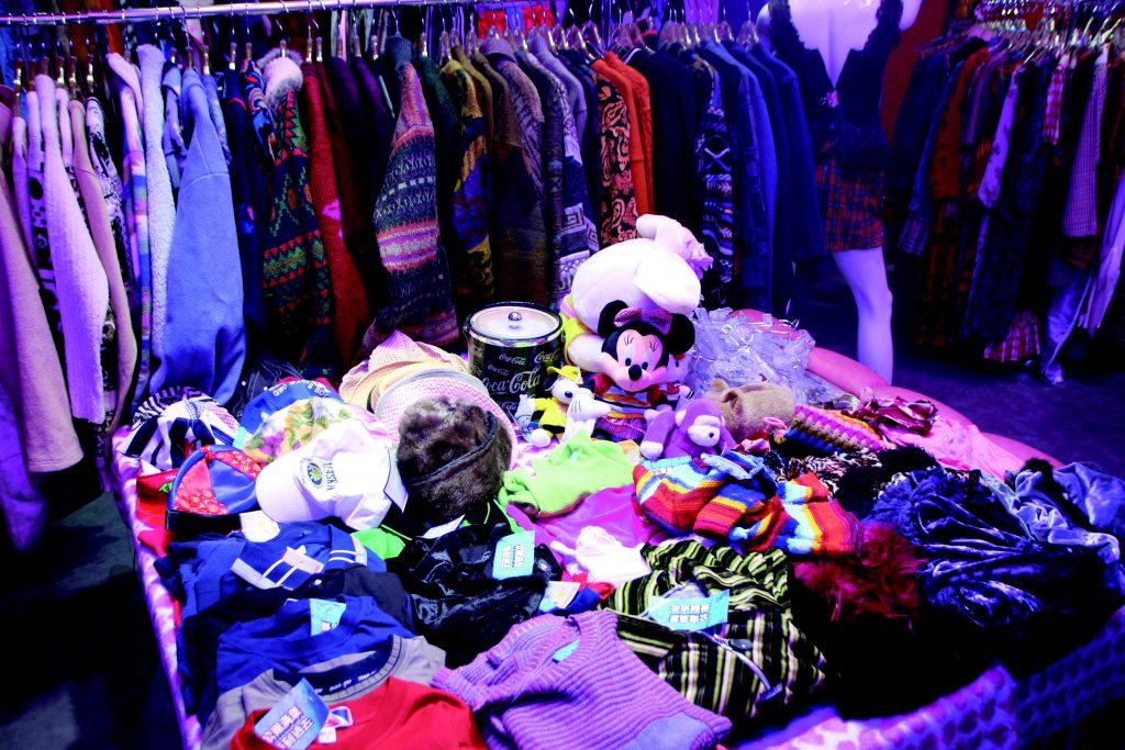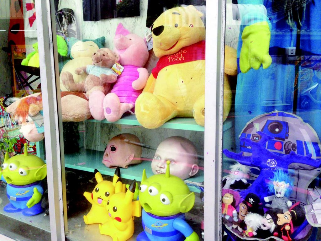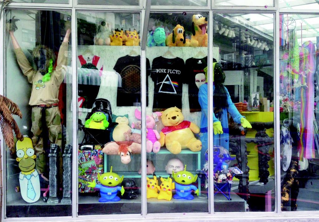 落地窗一眼看去就是各種玩偶、公仔、面具、衣物、吊飾、裝飾品等充滿趣味惡搞的商品,吸引眼球的同時,人也不知覺的走了進去,順著樓梯而下,則是充滿古著的小空間,衣褲、鞋襪、帽子、項鍊、包包,只要能戴在身上的應有盡有,想找什麼東西的話,商品資訊和粉絲頁也時常更新,玩具蒐集迷的天堂非這裡莫屬。–陳潔生/文 楊翰雯/譯