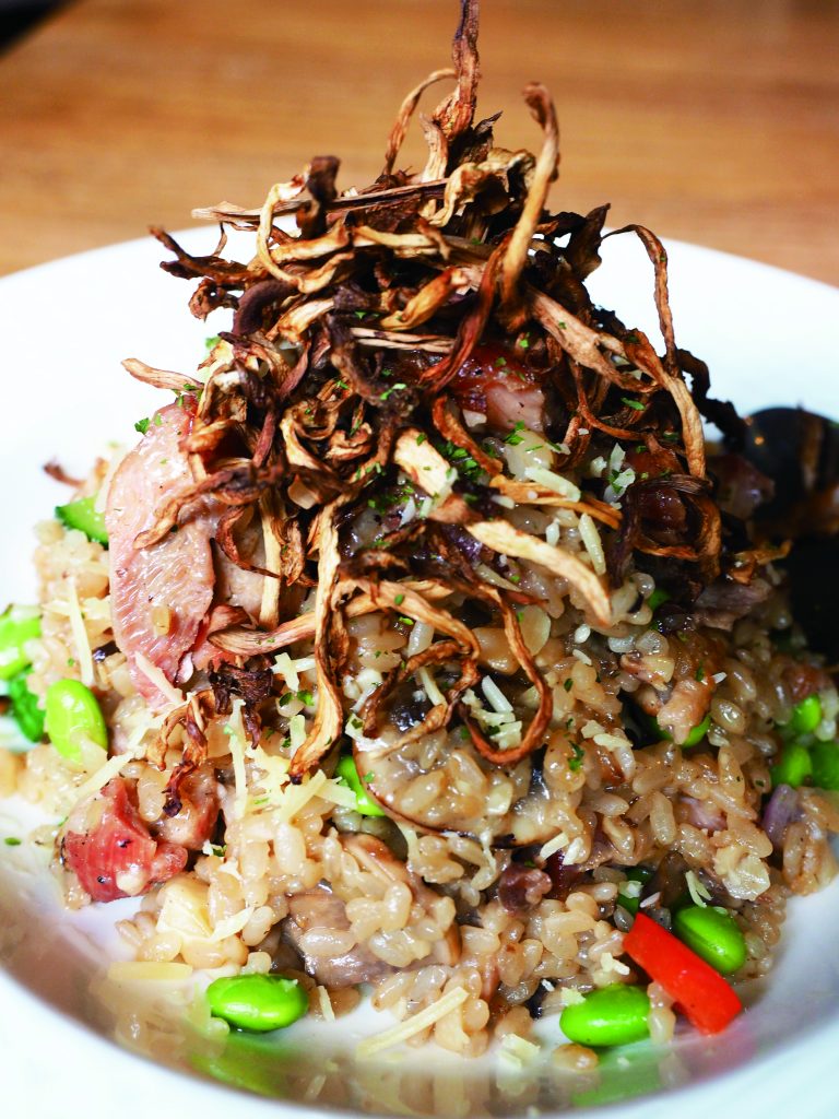 我最近一次前往店家用餐,享用了份量相當足夠的蘑菇牛肝菌雞肉燉飯(360元),菜單還有其他亮眼的選項;包含康門貝爾甜甜圈披薩(420元)、特製煙燻豬肋排、越式雞肉串(180元)、海南雞肉飯(280元)、秘製牛肉麵(320元)、普丁漢堡(320元)、自製雞肉波菜起士戒指麵佐松露醬(390元)與瑪莉皇后(160元/兩人份)。另外還有素食與不可或缺的多款酒精/無酒精飲品選項。
