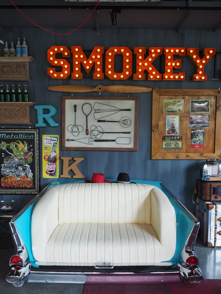 自從南部冒煙的喬美式墨西哥餐廳在台中進駐旗艦店後,便令人深刻印象。首先是渡假村樣貌的外觀與院子中的噴水池;另外還有供應172個座位的寬敞用餐區,各個角落的懷舊物品皆由老闆吳靜怡挑選擺設。包含分布在店家四周的雪佛蘭小貨車、舊式加油站、標誌、動物的骨頭與牛仔帽;台中分店經理邱聖賢表示;優雅的環境吸引各種人士,包含商業人士與家庭,但其中1/3的顧客皆是女性。
