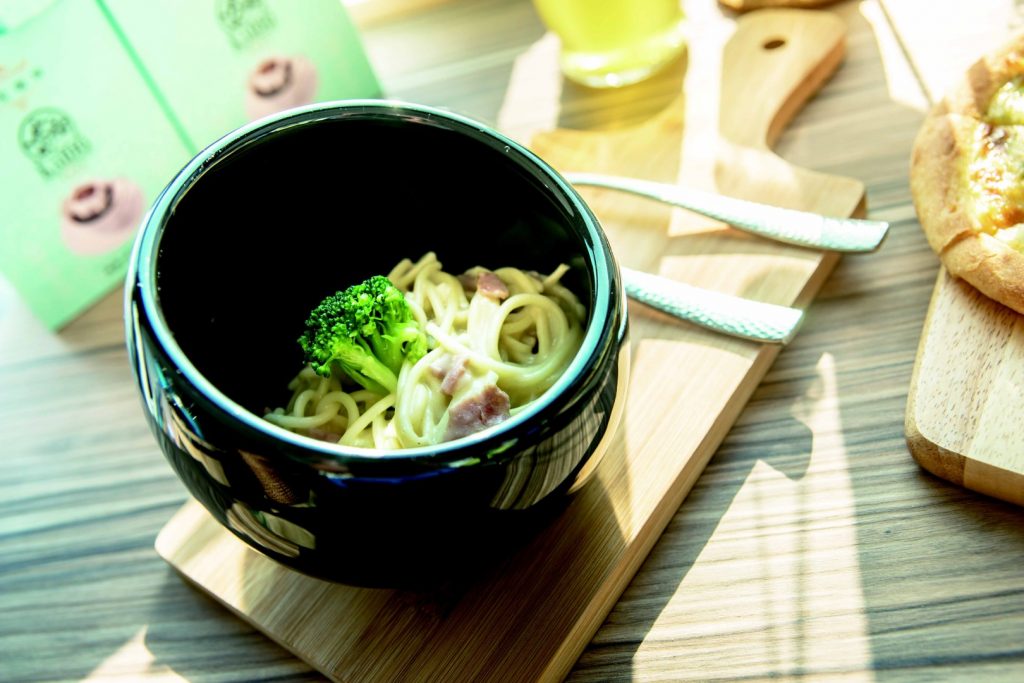 各種口味拿鐵咖啡(90~100元),經過6道工法的咖啡豆,以義式咖啡機萃取成低咖啡因,但不減濃厚香醇的咖啡味,是喜歡喝咖啡又怕睡不著的朋友最好的選擇。輕食有披薩(135元)、義大利麵(125元),手工製作的麵條,現點現做,吃到美味高品質的餐飲卻是平價消費,不失為都市叢林中暫時放空的好去處。
