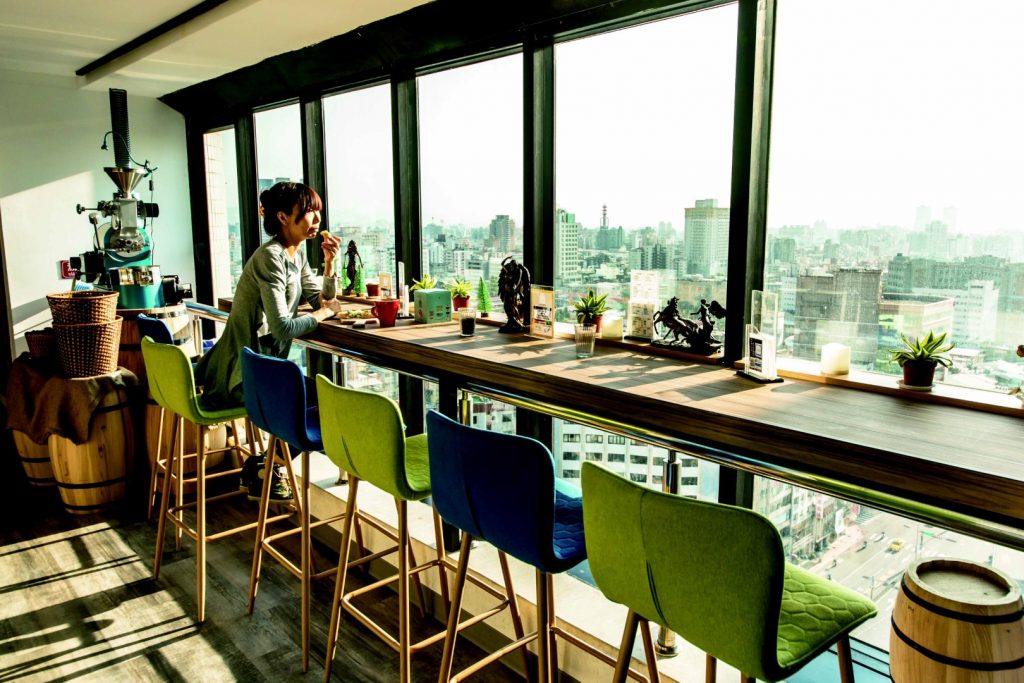 隱身在商辦大樓的高樓,透亮的落地窗無論白天或黑夜都能欣賞外界車水馬龍的街景,任何時候來一杯咖啡,享受輕食,都是身心靈的自在與放鬆。除了單品現煮熱咖啡、拿鐵、冰釀黑咖啡,所有飲品都以竹碳水製作。店內招牌冰滴高山茶(100元),採摘阿里山1600海拔高山茶,冷泡慢速冰滴一壺大約4.5小時製成茶湯,需要經過隔夜,讓兒茶素和茶香釋放,杯中美麗的冰球也是茶湯製作,喝起來到最後一口仍清新甘韻。