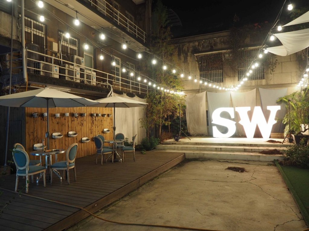 一旁容易令人忽略的側門,則能帶顧客進入寬敞中庭,那裡有吸煙桌與架設的舞台、酒吧與桌子的大型活動區域可供出租或特殊活動使用。