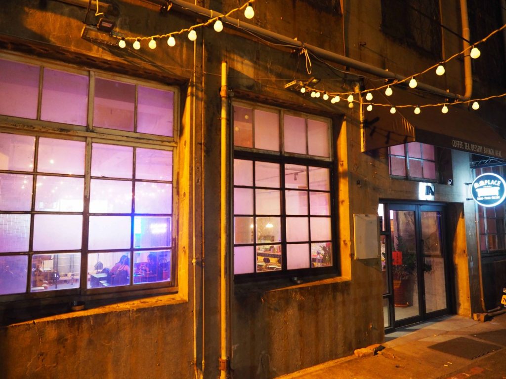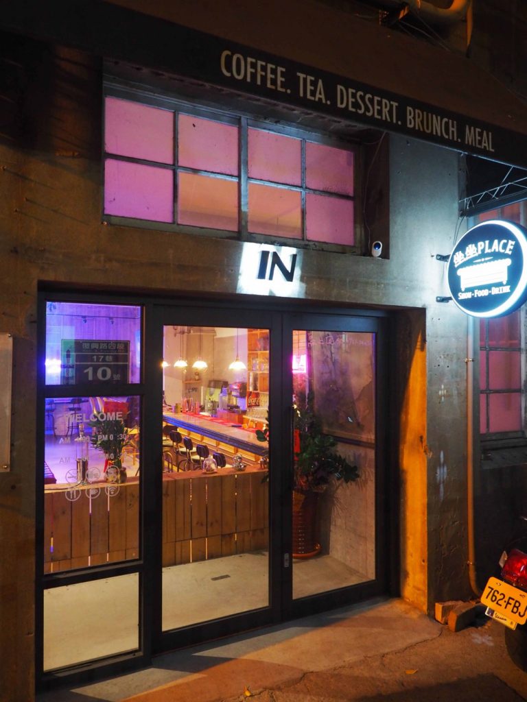 「坐坐」這間店名絕對是許多客人在深夜會想前往光臨的地方,但你得先找到這間店的位置。如果你在台中路上請向南前進,遇到復興路後左轉,直行後再往左邊的第二條巷弄轉進,此時你會看見第一銀行分行。店家就處於早期盛香堂(雪芙蘭製造商)幾十年舊大樓內。色彩繽紛的燈光和音樂透過老式窗戶而傳到安靜小巷上。這個地方不時傳來一旁高架鐵路火車轟隆聲響,另外在高聳的台中李方艾美酒店下方也營造出特別的氣氛。