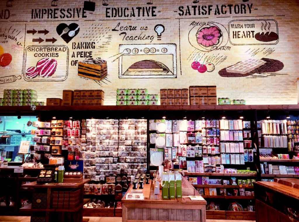 推開桿麵棍手把的木頭大門,走進瀰漫著烘焙香的挑高空間,整面牆都是烘焙愛好者的夢幻逸品,像是美國Nordic Ware造型烤模、日本CAKELAND、德國Birkmann的用具等,上百種趣味的造型餅乾模具,宛如小型博物館,各種大小的梅森瓶,還有節慶、派對的包裝材料、裝飾品,適合注重生活情趣的你,亦有小份量的嚴選食材,複合式經營的賣場結合烘焙體驗;有適合親子、成人的課程,預約報名即可參加,還有現烤出爐的麵包、精緻蛋糕。餐廳則供應義法創意料理,排餐、燉飯、義大利麵,餐點使用天然在地的食材,非常適合閣家光臨的烘焙樂園。