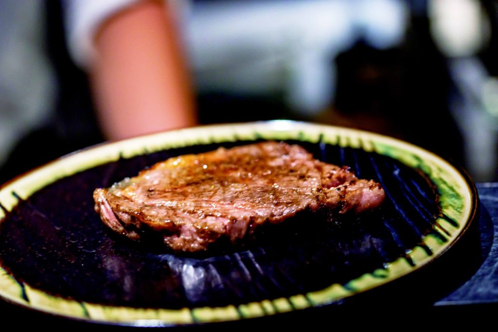 這間低調奢華以澳洲和日本九州和牛燒烤為主的料理餐館,僅有少數的吧檯坐區,舒適的皮革高腳椅,柔軟又有質感。客人直接和帥氣型男主廚Eric互動,主廚從挑貨到採買食材都嚴格把關,選用上等牛肉各部位精挑細選;從備料、切工到烹調燒烤都親力親為,吃的非常舒心。