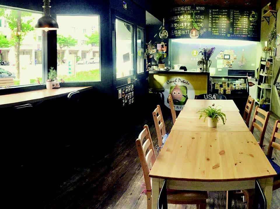 座落在台中公園附近的大馬路一隅,典雅簡約的黑色外觀店面與玻璃櫥窗搭配色彩輕巧的指標和照片,點綴出輕鬆愜意的感覺,符合身為「沙發馬鈴薯」(慵懶)的形象,忙碌的生活釋放一點隨性的小自由,店內空間不大,但桌與桌之間還是有寬闊的距離,最特別的是門口設有QR CODE讓大家掃描可得知店內資訊和候位的順序,老闆會親自回覆您,省下你寶貴的時間。