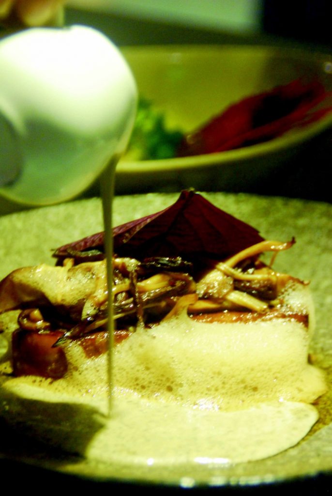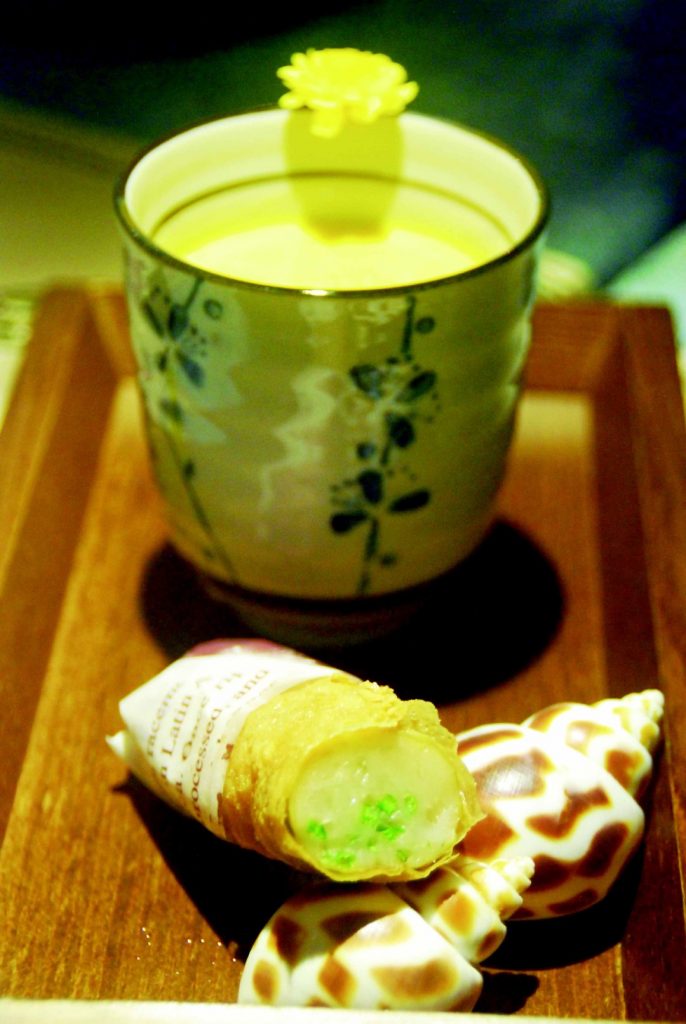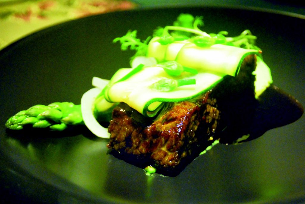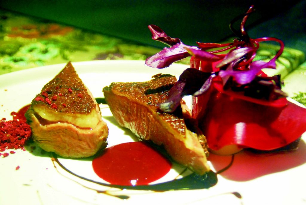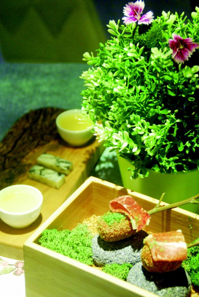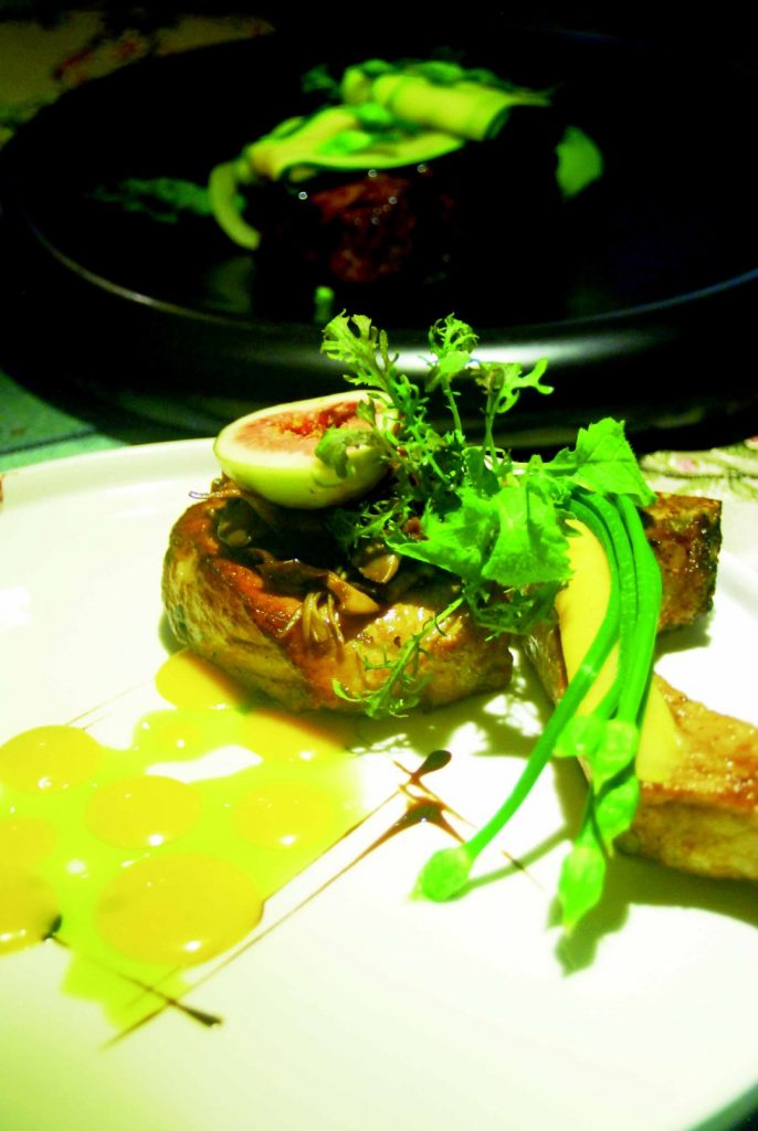 有著歐式綠蔭庭院和落地玻璃窗、水晶吊燈、藍白系列的地中海型餐廳,以法式當代料理為主,主廚宋洪昌結合多年法餐經驗和藝術創意,做出各系列色彩繽紛,多元變化的季節套餐。以在地小農蔬果直送,和具有產銷履歷的肉品如花蓮玉里櫻桃鴨、有心放心豬,彰化白蘆筍等,佐以醬汁點出每道菜的靈魂精華。無菜單價位為1380/1680/1980元;有開胃小品、冷/熱前菜、麵包、湯、主菜、甜點、飲品。前菜變化豐富,如一口吃的可樂餅上搭配西班牙臘腸、黑色大理石花紋竹炭白花菜奶凍、鹹蛋黃酥炸的烏魚子刨成碎末的米餅,還有蘋果泥蘋果泥汁、檸檬、橄欖油調味、口感清新酸甜的冷湯,每一道都精彩。主餐選擇很多,也有菜單可選擇羊排、嫩肩牛、寬扁麵、無骨牛小排、戰斧豬、櫻桃鴨等,搭配主廚自製蔬果醬汁,挑起味蕾的饗宴。午間套餐780元起,即可享用多種主菜和附餐,物超所值。