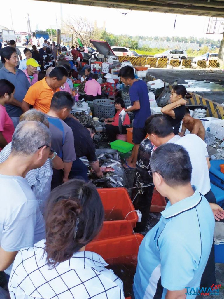彰化縣線西鄉漁港路,西濱快速道路(台61線),下交流道即抵彰化線西塭仔漁港。塭仔港是當地漁民上下漁貨停泊船隻的小港灣,漁船依潮汐漲退進出海,非常有在地純樸的風味。台61西濱快速道路橋面下,平日零星幾攤魚販,每到下午就有販售剛補撈回來的漁貨,假日比平日熱鬧許多。除此之外,只有帶著鹹味強勁的海風吹過玉米田拂出撩人波浪。 每逢假日,攤販湧進,除擺滿新鮮魚貨外,還賣烤玉米、烤魷魚、各式炸物,鄰近農家栽種的洋蔥、茄子、農作物往地上一擺,小市集吸引著熟門熟路的來客。沿路有叫賣碩大的沙公沙母、活龍蝦、野生草蝦、烏仔魚、白帶魚…或是秤斤論兩、或是整簍100、200元,蛤、生蠔、貝類等。現場也有代客料理的攤販或餐廳、代客料理費約100~200元,把剛買的海鮮立刻烹調享受。露天用餐攤販還有附帶卡啦OK,邊吃邊唱。濃烈台灣鄉土的在地風情。飯後還可到附近的肉粽角看風力發電的大風車,寬闊的海面映著夕陽餘光,海天一色,心也跟著淨空!
