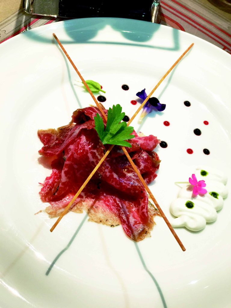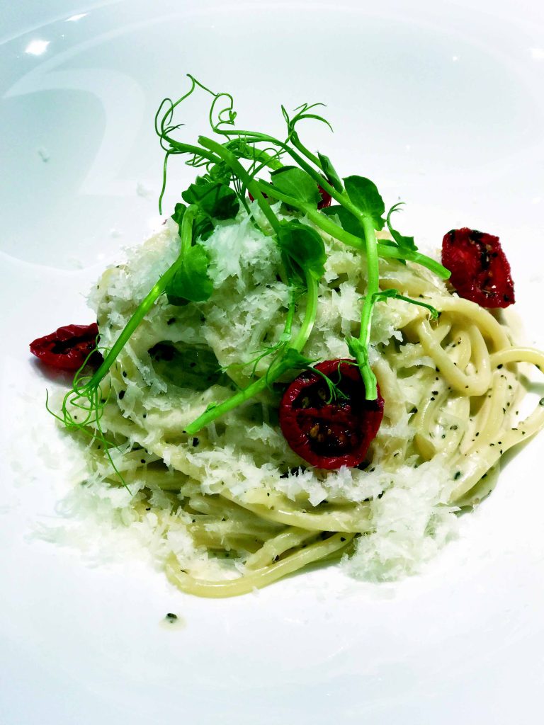 上門的顧客肯定會被道地的義式餐點、飲品與生活用品給寵壞!在高級又華麗的義式風情環境下享用輕鬆的下午茶;包含一壺精緻瓷器壺的茶(250元),或是多款咖啡選項(200-350元),以及巧克力奶油香草冰淇淋(280元)。如欲享用輕食類,推薦你選擇由橄欖油調味的福里安沙拉(350元),或是雞肉與菊苣三明治搭配特製醬汁(250元)。午/晚餐則建議點選價位1600元的套餐,或是單點胡椒口感濃厚的羅馬起司黑胡椒義大利麵(460元)、福里安蔬菜披薩(450元)或濕式熟成薄切和牛佐水牛起司(380元)。 –陳麗珠/文 楊翰雯/譯