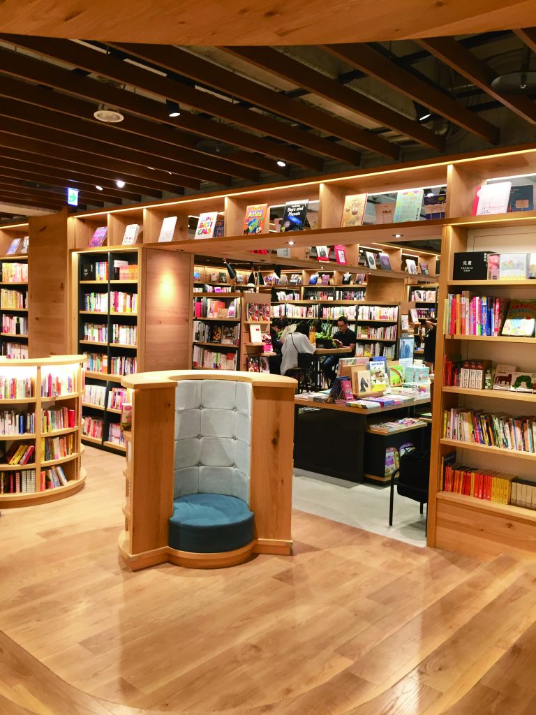 來自日本的連鎖書店時尚又寬敞,有全球最美的書店之一美譽。供應不只日文,中文書,還有生活性雜誌、日系商品、居家用具等,進門一隅高品質的餐飲區,有和風洋食咖啡店、來自沖繩那著名的Doug’ Burger,以和牛漢堡為主,精緻的甜點包含莓果法式吐司(370元),與招牌冰淇淋漂浮奶茶 (220元)。書籍選項分類清楚,中、英文雜誌與適合大人小孩的書籍。還提供兒童迷你圓椅,方便孩子們翻閱,而家長也能安心的在一旁閱讀其他書籍。店家提供長型木頭板凳與閱讀燈,顧客購買前可先預覽。透過大窗戶望向綠意盎然的陽台,在這裡閱讀與用餐是極大的身心靈享受。 –陳麗珠/文 楊翰雯/譯