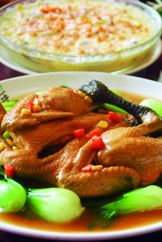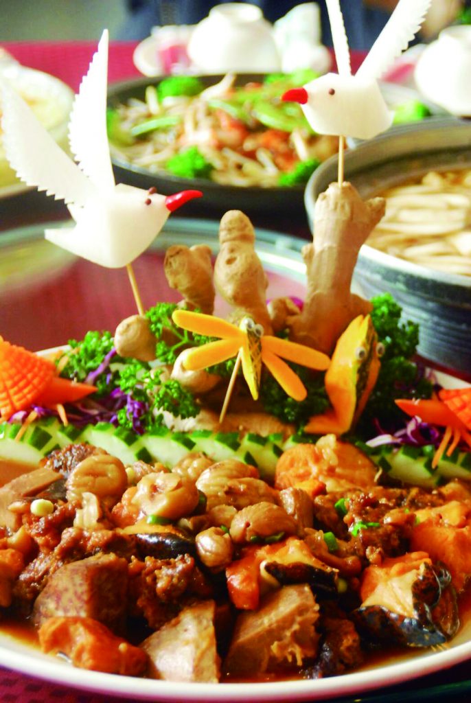 除了一般常見的海鮮、台菜、川菜還有錦菇羊肉鍋(500元),以珊瑚菇、杏鮑菇、香菇等多種菇類燴煮10公斤上下小羊肉,湯頭鮮甜、香氣溫潤。芙蓉鮮魚卷(560元)將鱸魚肉包捲青蔥墊上豆腐塊清蒸,清甜鮮美。 紅燒栗子鰻(720元)鰻魚炸過煮上栗子,鰻魚大塊彈Q、吃起來肉質厚實爽口。