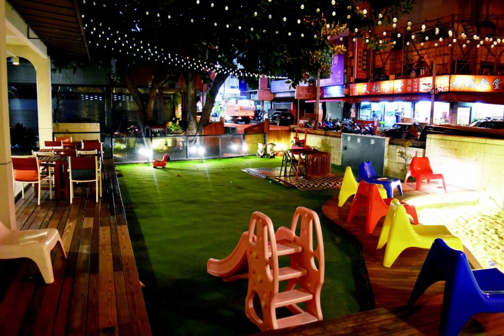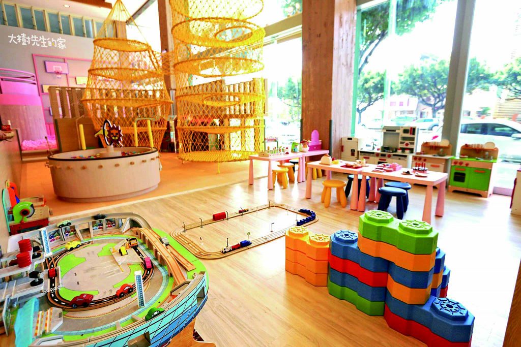 這間多功能的餐廳將遊樂區和適合所有年齡層兒童及父母的活動中心合而為一,家長與孩子的入場費只需150-180元便能享用3個小時的娛樂時間,包含孩子喜愛的玩具、扮家家酒小廚房、大型沙池、球坑和攀岩區。 餐廳還有經驗豐富的藝術、音樂和魔術老師指導兩歲以上的兒童其課程。孩子們這段時間有老師監督,而父母則能獨享安靜的時光。 另外設有特殊的攀岩、遊樂區以及免費尿布給兩歲以下的嬰兒與幼兒。適合孩童的餐點包含日式與義式的中式炒飯(249元)、曙光雞肉義式燉飯(249元)與店家自製兒童餐點與新鮮果汁。家長的餐點包含鹽烤挪威鯖魚(390元)、黃金台東松阪豬(360元)與經典青醬鮮蝦義大利麵(330元)。