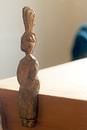 C: 跟我們談一談你對木工創作的興趣吧!那是怎麼開始的? U: 家俱是我們日常生活中的必需品,從1995年起,我太太和我旅居過許多不同的國家,像是祕魯、厄瓜多爾、奈及利亞、墨西哥、巴基斯坦、以及美國,在每個國家我們自己製造和販賣這些傢俱,至於小件的木雕作品,通常是當我看到一塊殘餘的木塊 ,我會將它拿來隨意的修削,一直修飾到有一個較具體的形狀或人型出現為止,我很喜歡從事木工創作,但是太沉重的木頭就比較難以進行,所以我做小件的雕刻作品,像是小型的雕像。