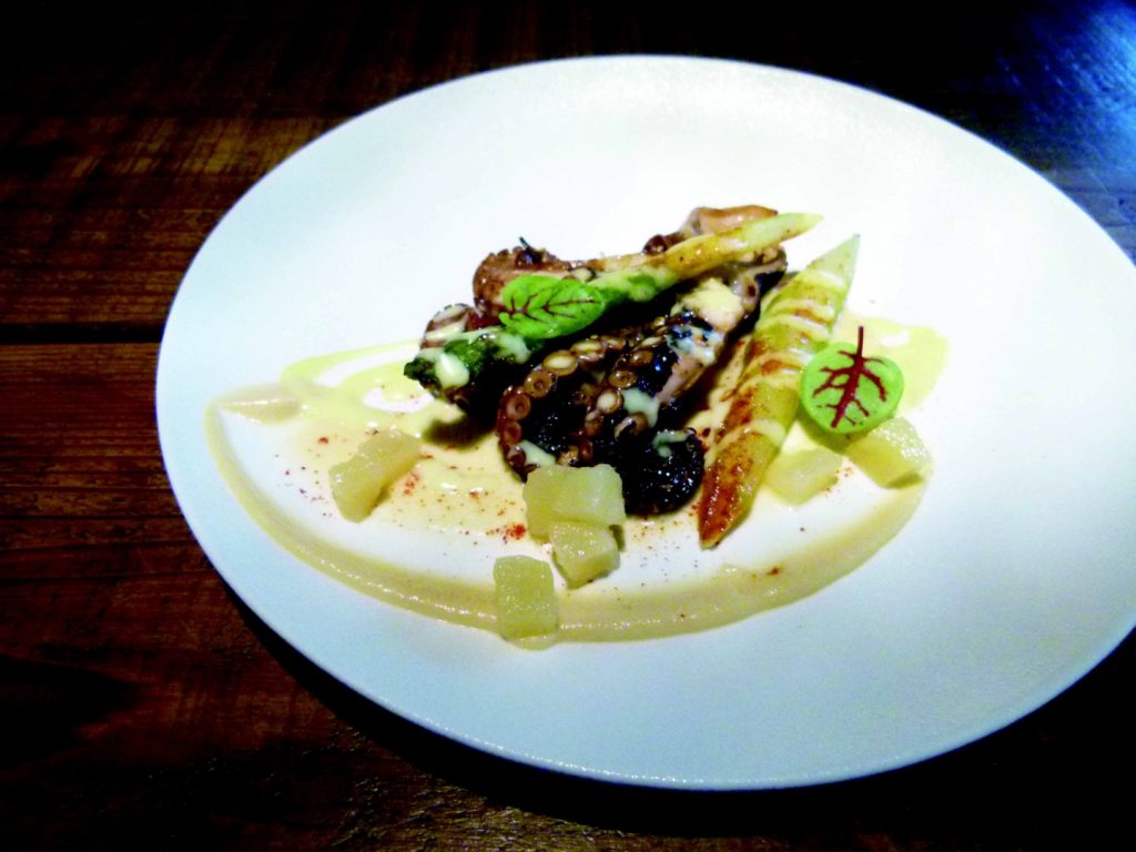 太陽下山後,不同美味的驚喜就被端到「餐盤上」。開幕一年多來,主要以歐陸架構做料理,破除文化框架的各種調味和特色醬汁,將進口與寶島季節食材堆疊擦撞後,創造出一道道色、香、味俱全且口感平衡的佳餚。