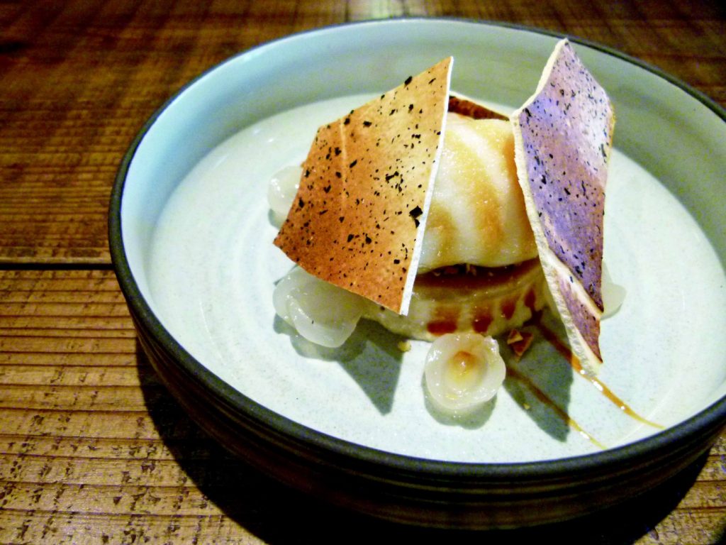今年夏天推出的套餐從一份雞肝醬裸麥三明治開胃,微烤過的麵包搭配自製薩索雞肝醬、酸漬白花椰丁、巨峰葡萄、燕麥與巴西里,一口咬下,複雜有趣的口感與風味在口中產生和鳴。接著,一道備長炭烤章魚、現流海魚後的主菜則有香料烤鴨胸(1150元)及煎烤牛小排(1350元)可選擇。飯後附甜點與飲料,自備酒款僅收50元/杯的清潔費。座位有限,建議事先預約。