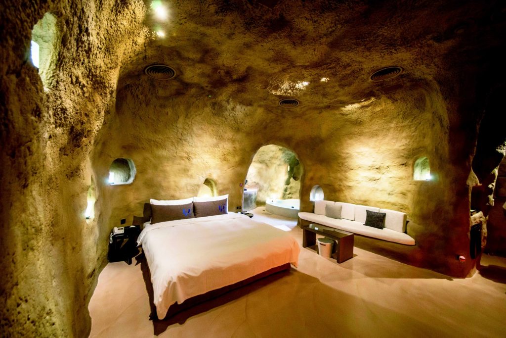 同屬台中商旅、台中之星體系的鳥人,再度打造了一間精品汽車旅店。外觀以烤漆鋼板拼貼的幾何圖形鳥巢,非常搶眼!房間設計有5種房型;沙漠、原始、復古、自然、浪漫,等主題,共33間房 (20~40坪/間),總占地約300多坪。打造出多變全新的風格,有的走自然洞穴風、石頭般的洞穴內部彷彿回歸原始的粗曠,有的充滿人文氣息,典雅柔美,豪華床上設計的採光罩也就是天井,可以看到外面的星空,產生無限遐想力,有的以清水模設計,或古早的紅泥牆裝飾而成的複雜工藝,展現了復古之美,浴室與戶外連接的延伸感讓身心更舒暢,視野產生明亮感,十分放鬆舒適。平日住宿3280元起,休息3小時980元起。–黎小安/文 楊翰雯/譯 汪仲猷/圖