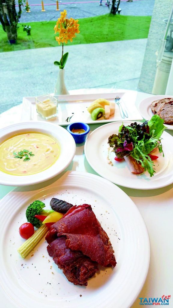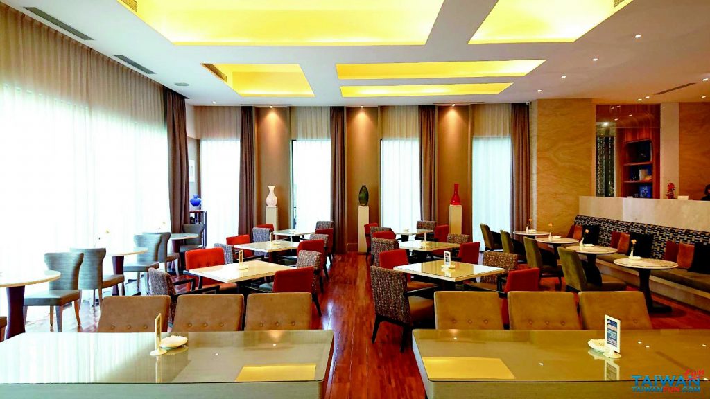 台中商旅CHEZ HUNG餐廳的用餐氛圍應該是讓顧客最印象深刻的亮點了,寬敞70人座的用餐區令人覺得大氣又有型;舒適的椅子、沙發、書櫃與現代藝術作品,全都因來自大窗外的自然光而照映的閃閃發光。 顧客以兩種方式享受餐廳令人放鬆的氛圍,午餐為大型自助餐約有60種季節性菜色。提供日式與墨西哥餐,目前至1月底主要提供新加坡餐點。菜色包括新加坡肉骨茶、椰漿咖哩燉牛肉、炸黃金餃與沙嗲雞肉串。平日與周末價位分別為每人570元與630元(加一成服務費/90分鐘用餐時間),在這美好的用餐環境與美食中,4人用餐一人享免費。 晚餐則有些不同,卻相同美味的7款西式主餐;包含素食的清炒伐木鮮蔬寬扁義大利麵(280元)、輕辣松阪豬寬扁義大利麵(320元)、10盎司U.S. Choice橙香帶骨牛小排(650元)與德國脆皮嫩豬腳(620元)。另可加200元,升級成套餐,包括麵包、沙拉、湯品、甜點、水果與飲品。 一旁酒吧營業至晚間11點,客人能邊享受美食,邊從一系列的啤酒、葡萄酒、威士忌與調酒中挑選搭配的飲品,另有定期特價優惠(詳情請見第14頁「夜生活」專欄)。 另外,這裡有兩間鄰近的私人包廂提供大約16-40人,可作為私人活動使用。