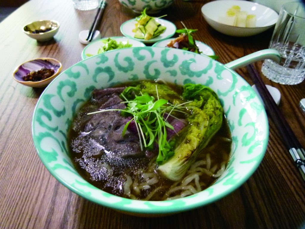 清燉牛肉麵(900元)的湯頭馥郁鮮美,喝得到慢火熬出的細膩層次,搭配手工細麵、炙燒娃娃菜、飛驒和牛腱子肉與涮和尚頭肉片(另附特製牛骨髓醬),唇齒間咀嚼得出師傅們的用心。紅燒牛肉麵(750元)則選用加拿大帶骨牛小排,搭配寬麵、酸菜與松露辣醬,勁道十足。店內僅8個座位,營業日每天僅供應20碗麵,售完為止,如果想嚐鮮,務必事先電話預約。