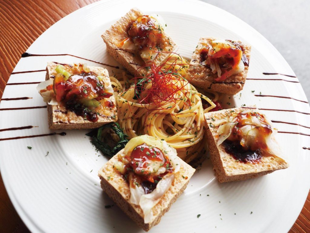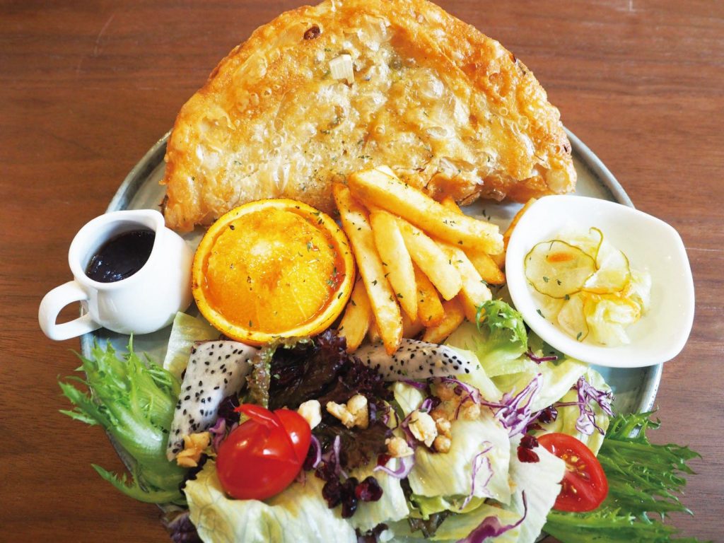 位於文創園區旁的慕尼灰咖啡,將中式元素放進義式料理,餐具採自助取用,每人低消110元。以早午餐、義大利麵及燉飯為主,另加80元,升級成套餐或40元加購沙拉、濃湯或限定甜點。店家把台灣小吃蔥油餅與臭豆腐結合義式料理增添在地特色。像蔥油餅松露乳酪牛(320元),蔥油餅裡夾著澳洲嫩煎牛肉、黑松露、鴻喜菇和乳酪絲,口感豐富,而搭配的柚子油醋醬沙拉則能解膩。以及義大利麵/燉飯類的泡妞偷吃臭豆腐 (255元),炸得酥脆多汁的臭豆腐搭配店家自製的蒜蓉醬和醃泡菜,很有層次感。另外有「不太餓單點」可以選擇,其中的炸饅頭(55元/2顆),起司片淋上煉乳,讓鹹與甜完美的融合。再搭配上一杯咖啡一起享用,就是完美的下午茶組合,咖啡豆選自雲林古坑並以中度烘培,入口濃醇甘甜很有層次感。飲品還有茶類、不同口味鮮奶類和特調可選擇。–黃郁欣/文 楊翰雯/譯