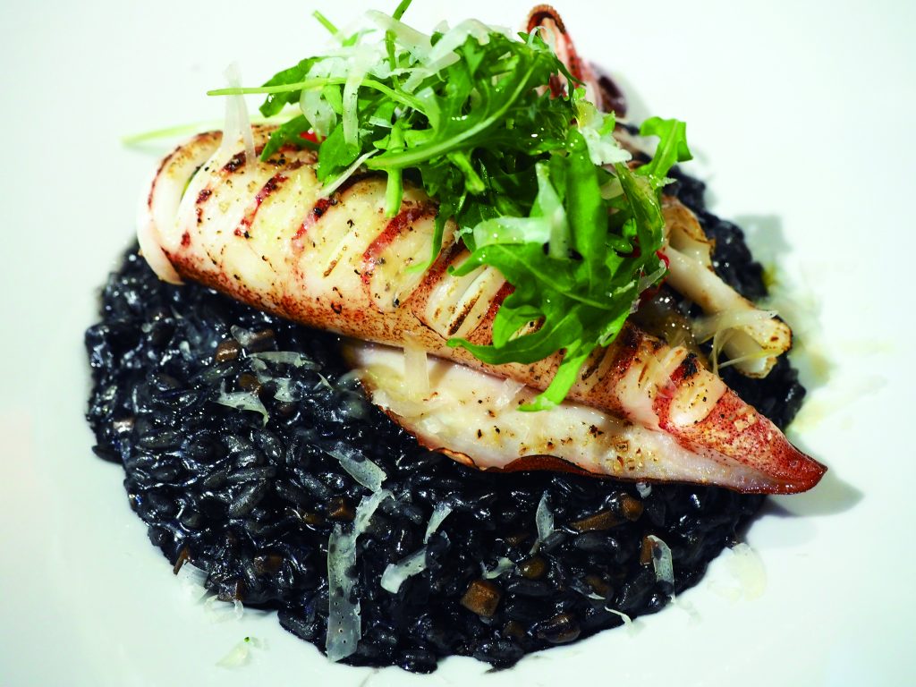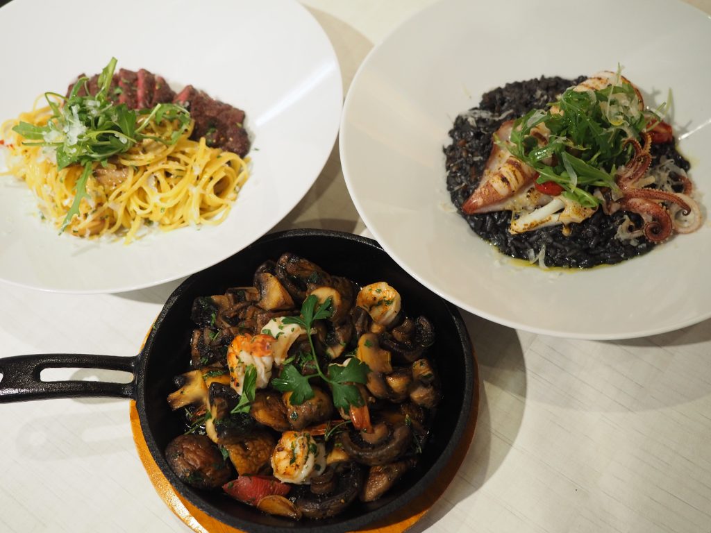 店家的燉飯也相當特別,以傳統義式帶有嚼勁的卡納羅利米製成。金槍烏賊墨魚燉飯(420元)的墨魚乾點綴其中與墨色米飯為這道佳餚帶來不凡的滋味。牛肝菌菇松露溫泉蛋燉飯(350元)則呈現香濃美味。主餐加購199元即能享用套餐;包含麵包、沙拉、湯品與飲品。