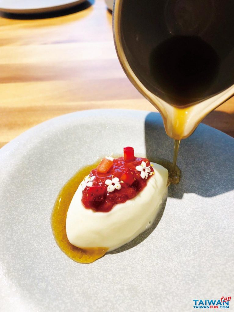 一樓是舒適咖啡廳,有每日限量手作烘焙可內用或外帶,2樓為餐廳設計風格簡約,提供季節性套餐(790元起)以法式手法料理有4道前菜、4道主菜與甜點或飲品可選,亦可單點菜色,另有精選葡萄酒單(自備酒水,酌收開瓶費),是一個能小酌聚會的場所。 開放式廚房內師傅們忙著備料、烹製與擺盤,動作熟捻且默契十足。歐陸風格融入寶島在地元素,從前菜、主餐到甜點皆以手工製作,風味細緻乾淨、沒有過多盤飾或點綴,能吃到食材的原味與廚師們的巧思。若有需客製化餐酒包場服務,建議電洽預約。