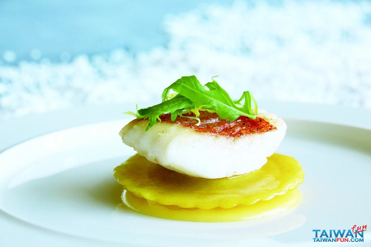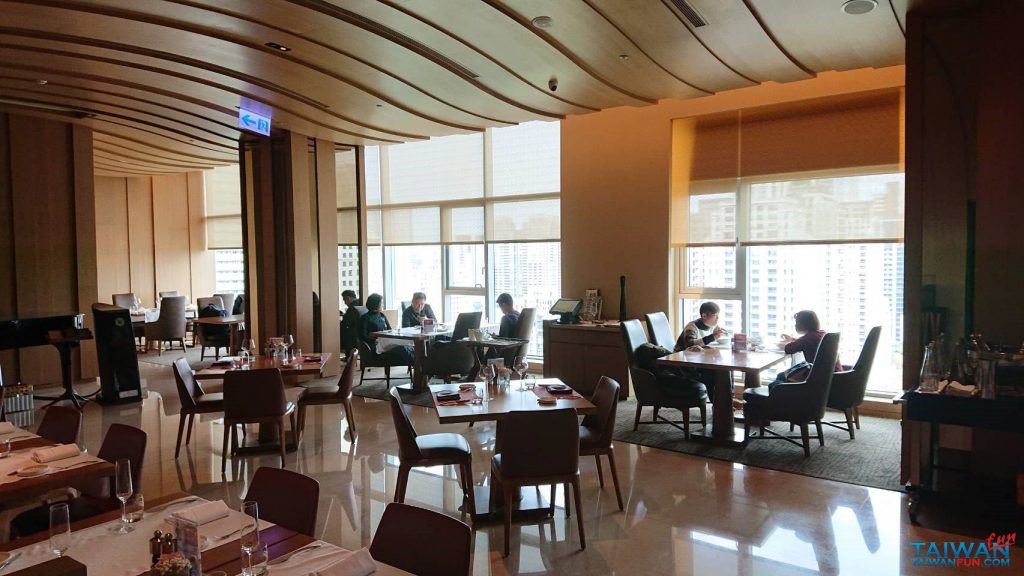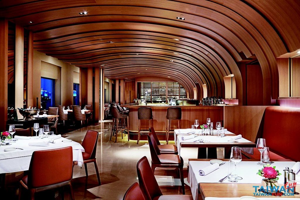 無論白天或夜晚,高級舒適的餐廳裡,有著又高又微彎造型的木製天花板,與整面大玻璃窗放眼望去聳立參天的建築物。我被邀請坐在一處隱私度高的角落,極炙牛排館主廚-何元嘉說;這個座位區是許多人最喜愛求婚的場所,在周五、六(7-9:45pm)並提供悅耳的現場音樂。