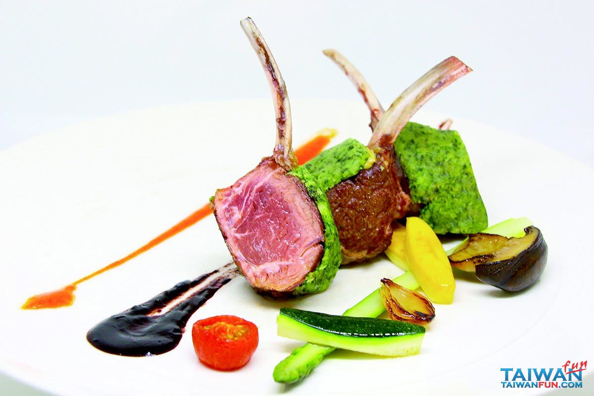 平日中/晚餐菜單提供10道主餐(單點980-2780元;套餐1680-3780元)如頂級濕式/乾式熟成牛排(另有豬肉、鮭魚、龍蝦與羊肉選項)。何主廚提到所有美國牛肉皆使用來自USDA Prime等級的安格斯牛,另還有澳洲AA9牛肉與日本A5和牛。何主廚擁有26年廚藝背景與許多中東料理經驗,擅長以高等食材提供健康料理,他說在台北這樣食材提供的料理價位約可至6至7千。