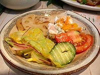 進入屋內,餐台上已經擺上了各式色香味美的有機料理,注重用餐氣氛的店長細心地在每個桌上放置了剛摘下的花草,希望帶給來店用餐的每位客人都有最愉稅的視覺感動!用餐採自助方式,餐台分兩邊;有飲料區、熱湯區,沙拉蔬果區,現燙青菜區;所有以上餐點都附有一套主餐(豬排,羊排,魚排等時常變換),亦有素食可選擇,由服務人員另外送到餐桌上。