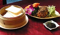 令人一吃上癮的道地北京美饌有核桃鴨酥:嚴選鴨胸肉填入核桃仁、荸薺先蒸熟後再以小火微烤,搭配小黃瓜、甜麵醬夾餅食用,酥脆口感、獨特的風味值得你再三回味。