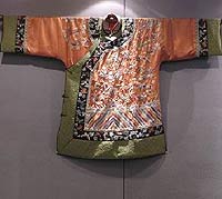 京華煙雲內部風格是由當代水墨大師-柯耀東夫婦以詩、書、畫結合現代極簡燈具為創作,搭配清代格格的繡衣與文武百官的補服繡片呈現,讓您有如遊走於清代書報館與二十一世紀餐飲的迴廊中。