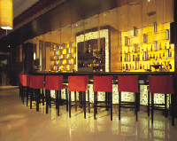 推開玻璃門,大廳左邊的二張迎賓椅彷彿隨時歡迎我們。登上二樓,寬敞、高挑的空間瞬間進入眼簾。大廳約可容納120位客人,四周以窗簾隔開分別為九間包廂,隱私中又能將舞台上的節目盡收眼底。特別是大廳右邊的超大豪華吧台、桌內特別製作的玻璃及牆上的燈飾,隨處可見業者的用心。大廳前方的大型舞台是為了每晚10點以後安排知名藝人演唱所準備。