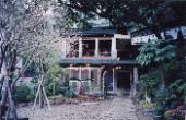 walking up the stone steps. The owner, Mr. Tsai, an artist