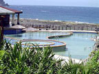 再往下走就是有名的「朝日溫泉」。(網址:http://www.sunrisehotsprings.com;電話:(089) 671-133)這個海灘是少數能比的上的,大概也只有義大利和日本的某個海灘囉!在朝日溫泉,只要區區兩百塊,你就可以在海岸線上,邊看著太平洋的日出、邊泡著幫助消除疲勞的無臭味硫磺溫泉。這邊共有三個池,漲潮時熱泉會被潮水冷凝。還有一個距海岸線一百公尺、提供水療噴泉的室內池。然而在這樣一個潮濕又風大的一天,最好的選擇還是窩在海邊的戶外池,偶而耐不住熱時,起身讓充滿水氣的海風吹涼一下。