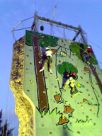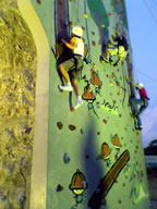 1) 8米高的三面蜘蛛攀岩牆—分為初、中、高三級,在教練一對一的引導鼓勵下,加上園區完善的專業設施,與絕對的安全保障,讓我們以無比毅力及身體平衡技巧,及自我本身強勁的手臂力,一步一步築牆攀爬至最頂端。※會員者,亦可免費自高空繩索滑降而下2次,效仿泰山般地吼叫幾聲,多舒暢啊!※