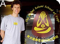 A. 13歲就開使練習功夫的Rob,曾在印度瑜珈專門學校研習並有瑜珈治療的資格。「上課的時候專心練習,下課的時候能夠將瑜珈的動作、精神融入生活的一部份,把心放鬆。」這是Rob對學生的叮嚀。