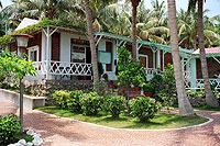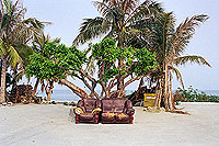 抵達哪個碼頭,都會立即感受到商家招徠摩托車出租(一天400元)的熱情,以及各家舌燦蓮花的優質住宿選擇。雖然小琉球近得不需過夜,但是當白日的遊客漸離,海島的寧靜才真正地漫臨。離白沙漁港不遠的椰林渡假村(電話:08-861-4368;雙人房2200元,雙床房3200元),有著依偎涼廊與椰子樹的迷人木造屋、面對海洋的遼闊視野和親切友善的服務員。