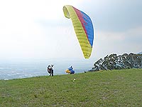 沒錯,高崖跳傘飛行的確激動有趣,同時是最輕鬆愉悅也最能欣賞秀麗景緻的冒險運動,每逢晴朗週末假日,只要你願意,都能不費吹灰之力的登高遊空。台灣擁有近乎理想的飛行環境,並且有許多適合此運動的場地。離高雄最近的是屏東縣三地鄉賽嘉航空公園,該處的指導員們個個熱心助人,很樂意提供詳細的著陸區方位。由於公園面積遼闊,當你到達時,可詢問當地人如何前往確切的山地起飛區,或朝山頭前進,過廣福大橋後循指標左轉續行即可抵達。戴好你的頭盔、將自己綁牢,並且確定一切配備齊全與使用正常,然後…跑!