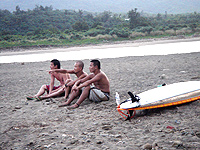 經歷在南非傑佛瑞灣(Jeffrey's Bay)幾近完美六呎海浪的衝浪經驗,我確信,當我來到台灣,仍舊會投入這項令我心醉的運動。某日,就在颱風來襲前兩天,我接到了一位朋友來電:"準備好!明天有好戲上場囉。"儘管心存懷疑,我還是開車南下經過佳樂水來到一片沙洲---