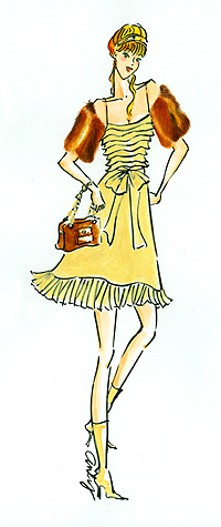 all-gold or silver-velvet material are hits. It's suggested